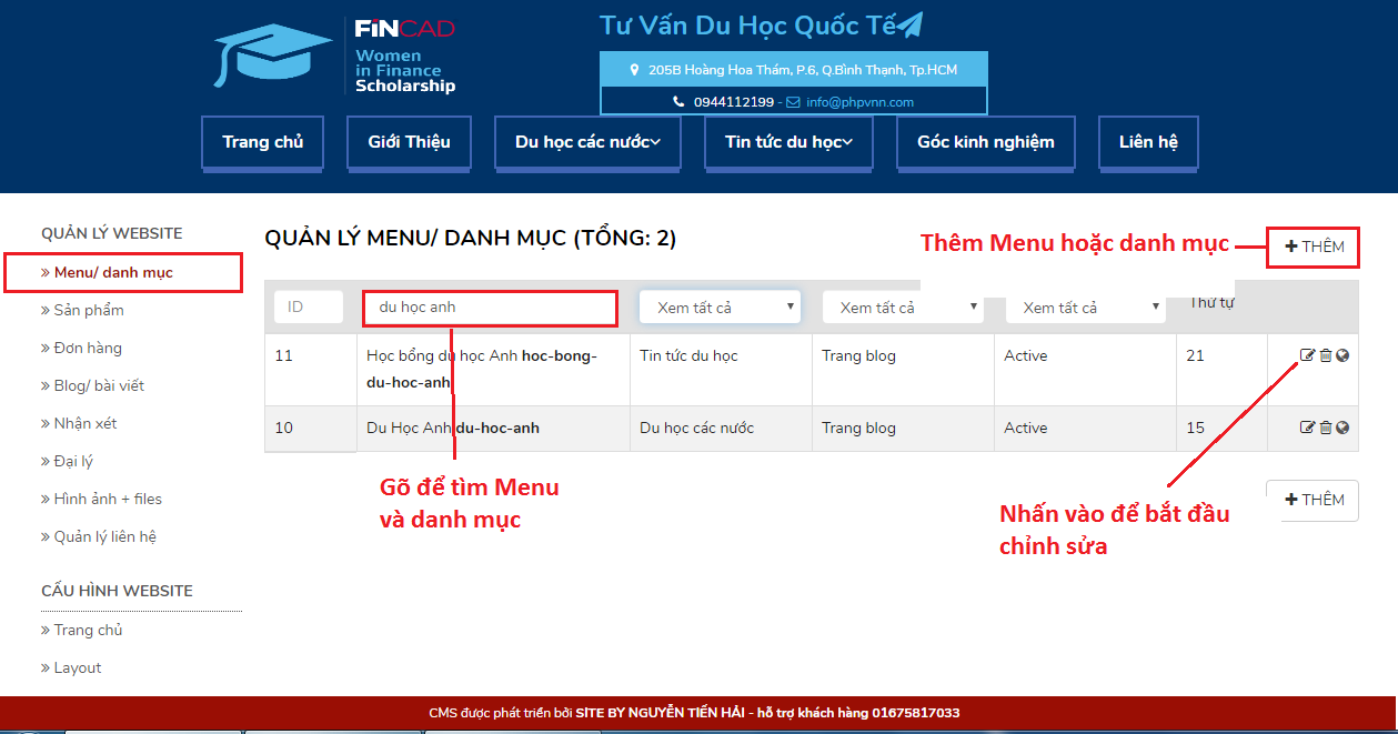 HƯỚNG DẪN QUẢN LÝ ADMIN WEBSITE