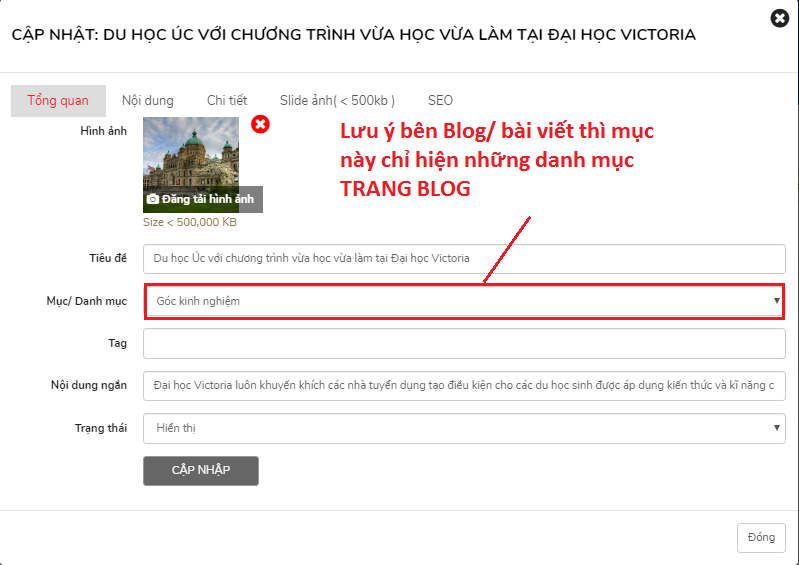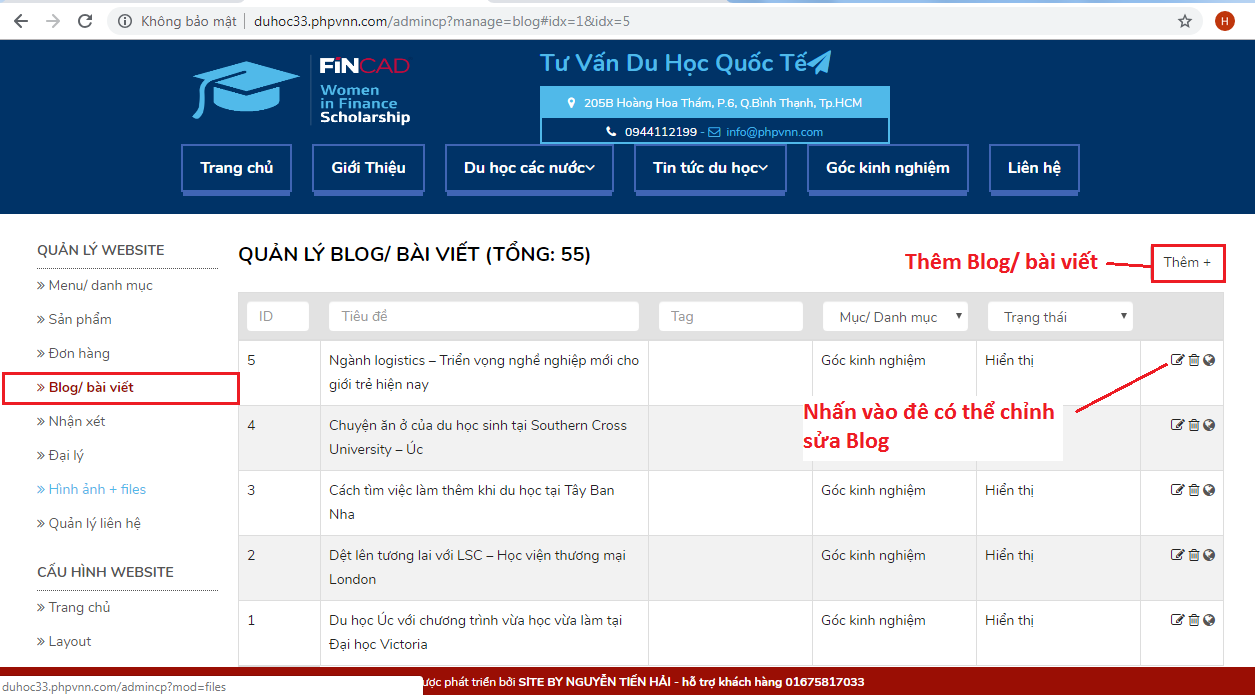 Về cách dùng thì giống hoàn với Menu/ danh mục hoặc Sản phẩm, tại đây bạn có thể đăng Blog/ bài viết lên website của mình.