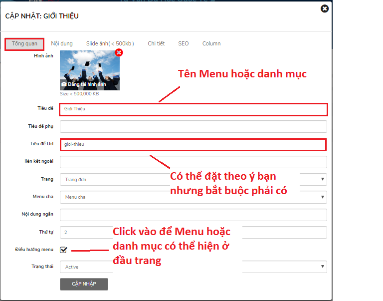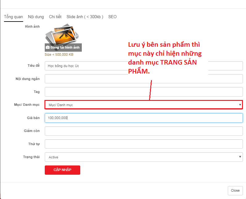 Về mục này chỉ dành cho các website bán hàng. Cách sử dụng hoàn toàn giống như Menu/ danh mục.