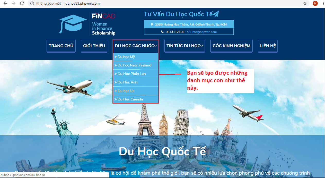 Và nếu bạn muốn tạo một danh mục con trong một danh mục lớn thì hãy làm như sau.